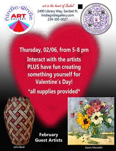 Our “Meet and Greet/Artist Nite” was a great success, our guest artists were in attendance as well as some of our members. Visitors had an enjoyable time creating their artwork with guest artist Karen Meredith and gallery member JoAnn LaPadula while Laura Black and husband Russ played and sang. Please take a look at our calendar and don’t miss our upcoming receptions-the first Thursdays of the month. Be sure to come to our “Open House” on Saturday, April 12, 2025 from 1:00-4:00pm. And take a look at our newly designed website for all upcoming events. https://www.hirdiegirdiegallery.com/. FOLLOW US ON FACEBOOK https://www.facebook.com/galleryhirdiegirdie/. SUBCRIBE TO US ON INSTAGRAM https://www.instagram.com/hirdiegirdiegallery/?hl=en. See more of the nights photos on Facebook and Instagram including the artwork that was created.